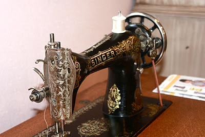 This past weekend we helped my grandparents move to a smaller home. Among many of my grandma's collectibles was a beautiful antique Singer sewing machine. She still used it sometimes for mending and hemming so she wasn't ready to give it away til now because she has granddaughters to do that for her! Saturday we got to take it home with us. We tried to look up some history about it. We didn't find too much about the specific model of machine except that it was made some time around the1920's. Right now it is a beautiful display in our shop but maybe soon we will actually use it a little just for fun. Having to push the treadle definitely gives you a good calf work out so maybe if I feel like getting some exercise I will use it.